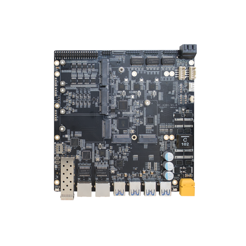 GC-A301 is an industrial-grade development board specifically designed for edge AI scenarios. Its core is equipped with the Ascend 310P processor, delivering up to 176 TOPS INT8 of AI compute, which meets the performance requirements for real-time AI inference in fields such as industrial quality inspection, autonomous driving, intelligent transportation, and intelligent healthcare.