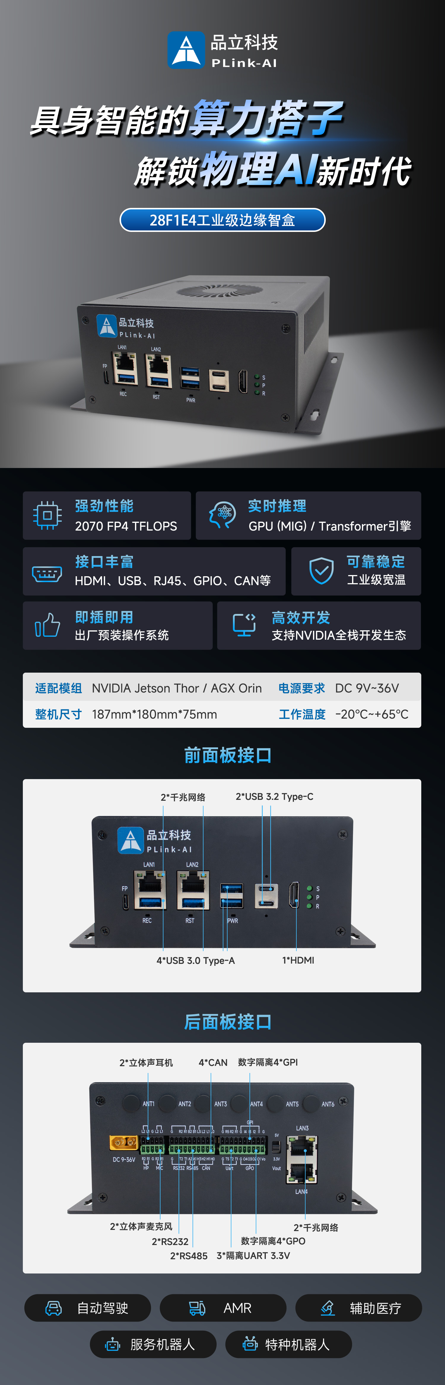 ● NVIDIA Jetson Thor 2070 FP4 TFLOPS,128GB LPDDR5X