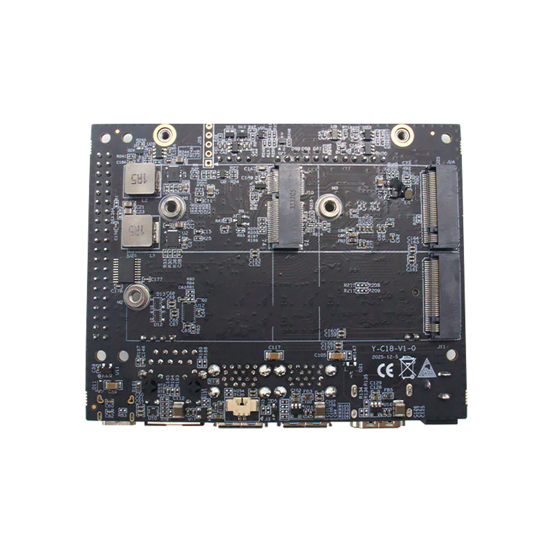 Y-C18采用工业级高可靠性设计,配备接口静电保护、电源过压与反极性保护机制,全板器件选用宽温型号,能够在复杂工业环境下稳定运行。该载板提供MIPI CSI相机接口,支持工业级图像采集设备接入;提供2个M.2 Key M插槽,可扩展2230和2280尺寸硬盘;提供1个M.2 Key E插槽,可扩展wifi模块。