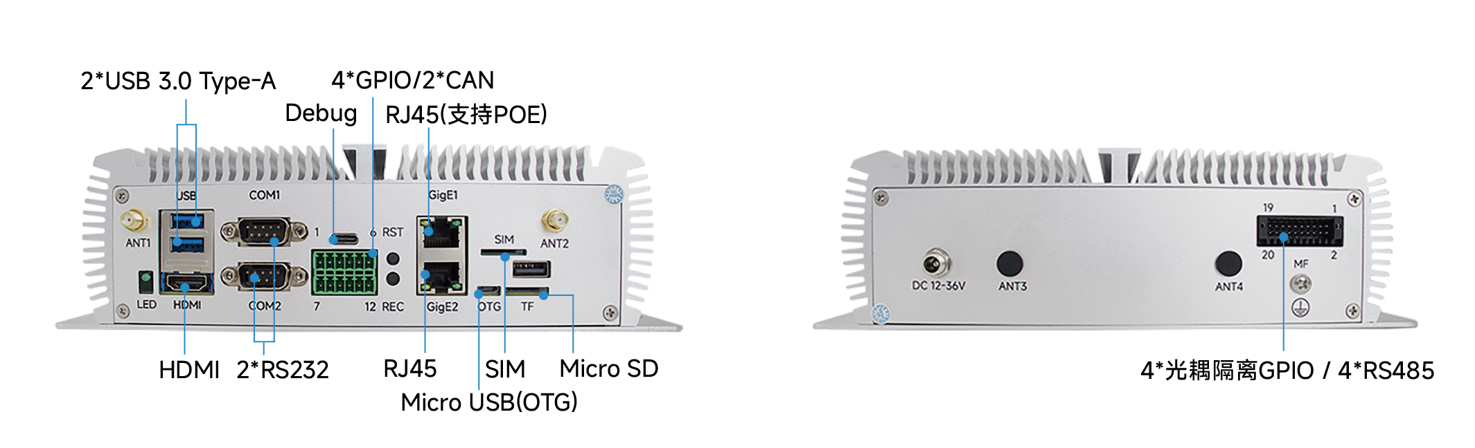 | 以太网 | 2x RJ45(支持1路POE) | |||